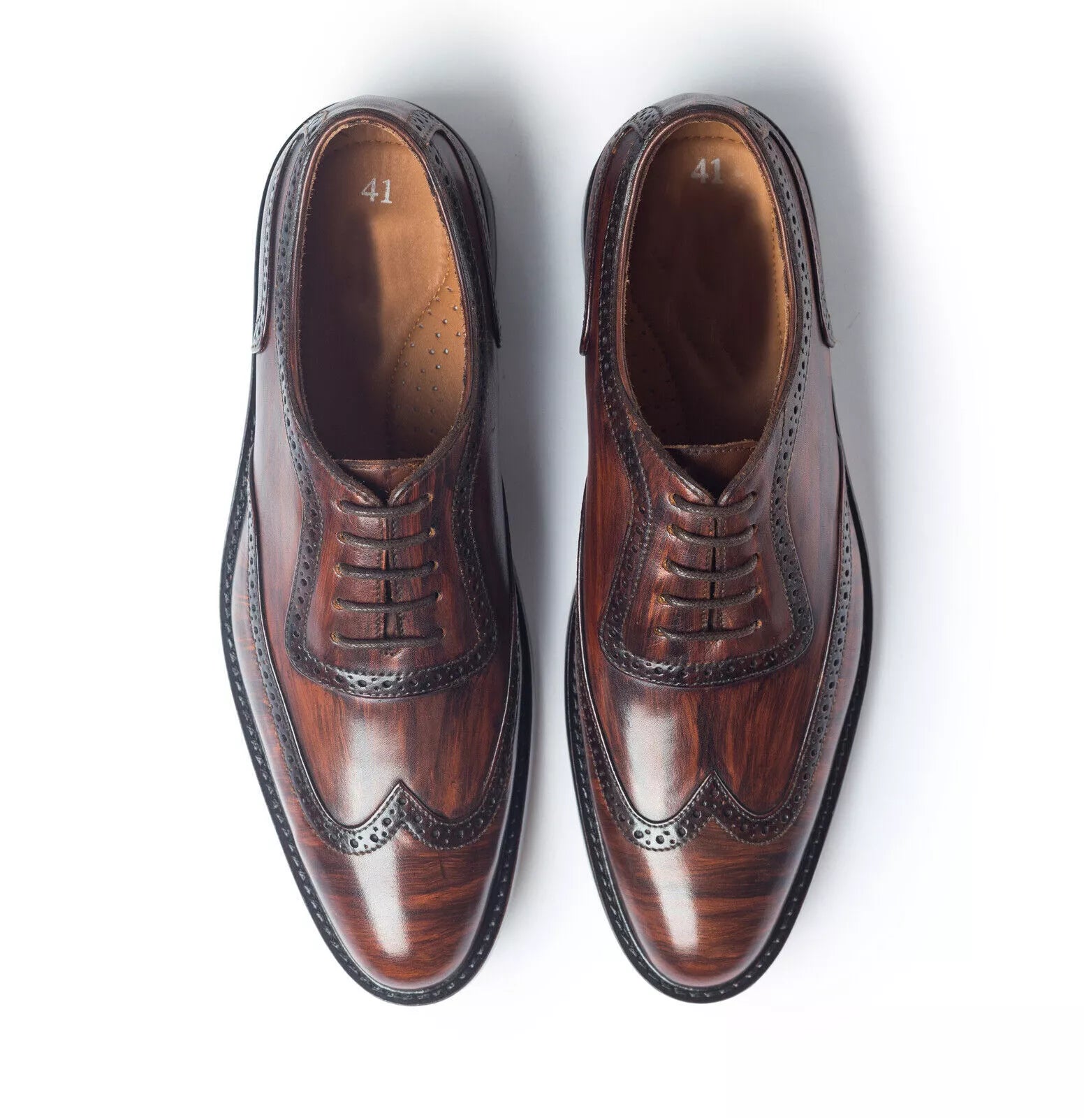 Men Handmade Shoes Wing Tip Oxford Derby Leather Two Tone Formal Casual Boots