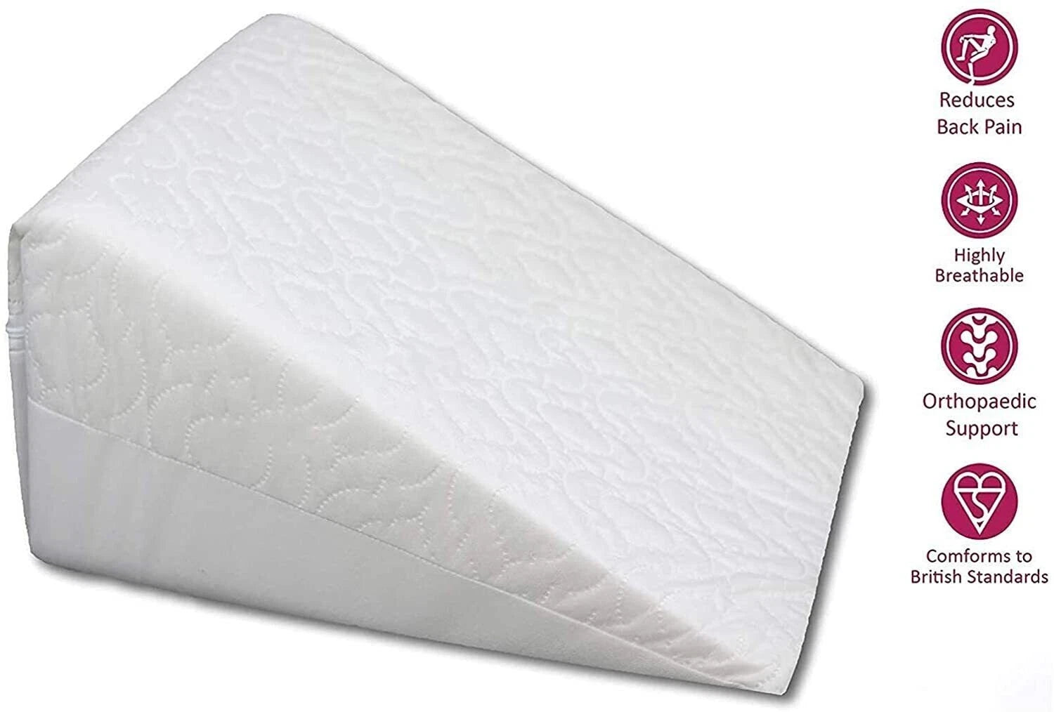 Living Standard delighted to offer Orthopaedic Support Wedge Reclining Pillow with Removable Quilted Cover. It can help attain various comfortable body positions to have comfortable sleep and rest, which could be for pregnancy, to aid upright position to reduce stomach reflux The support wedge Pillow can be helpful for other various medical conditions like respiratory & circulation issues. Ideal for individuals who suffer from Acid Reflux, Heartburn GERD and Back / Posture Pains Indigestion or breathing and or respiration related conditions